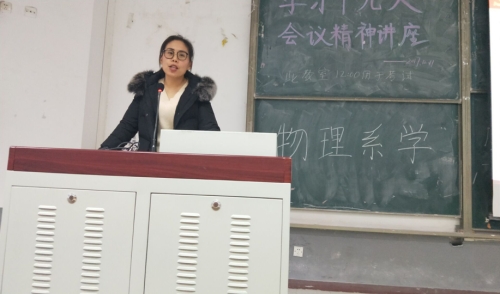 猎豹体育于     2017         12         12     日下午在第四阶梯教室成功举办《学习党的十九大精神》宣讲会。本次宣讲会由校宣讲团化学系李敏贤老师主讲,猎豹体育党总支副书记李雪梅老师和学工办主任李先铭老师担任指导教师,猎豹体育员工党员、员工干部参加学习。