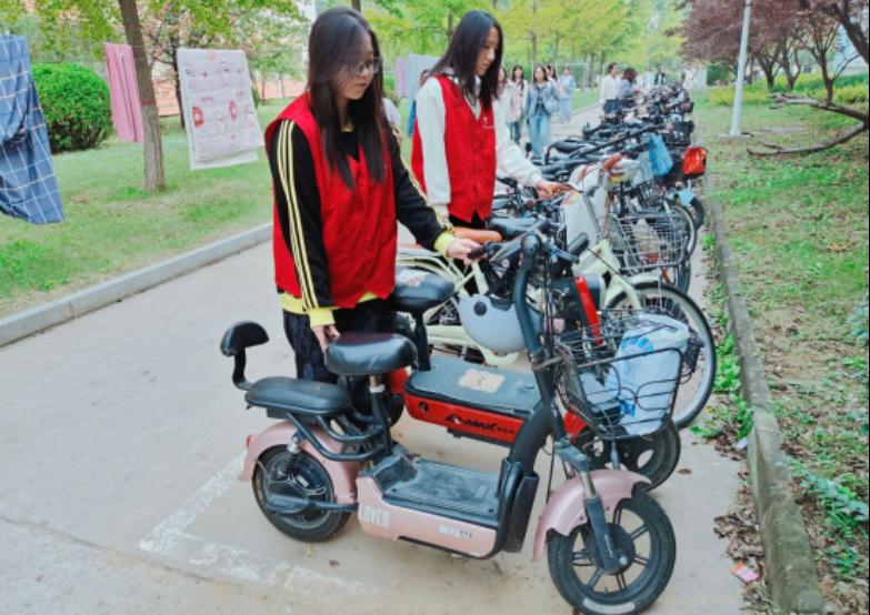 文明随我行,车辆按规停。专班小组成员合理分工,积极巡查,按区域依次摆放车辆,将乱停乱放的自行车和电动车整齐摆放在白线规定停车区域内,引导同学们遵守交通规则,安全行驶车辆,整齐规范地停放车辆。