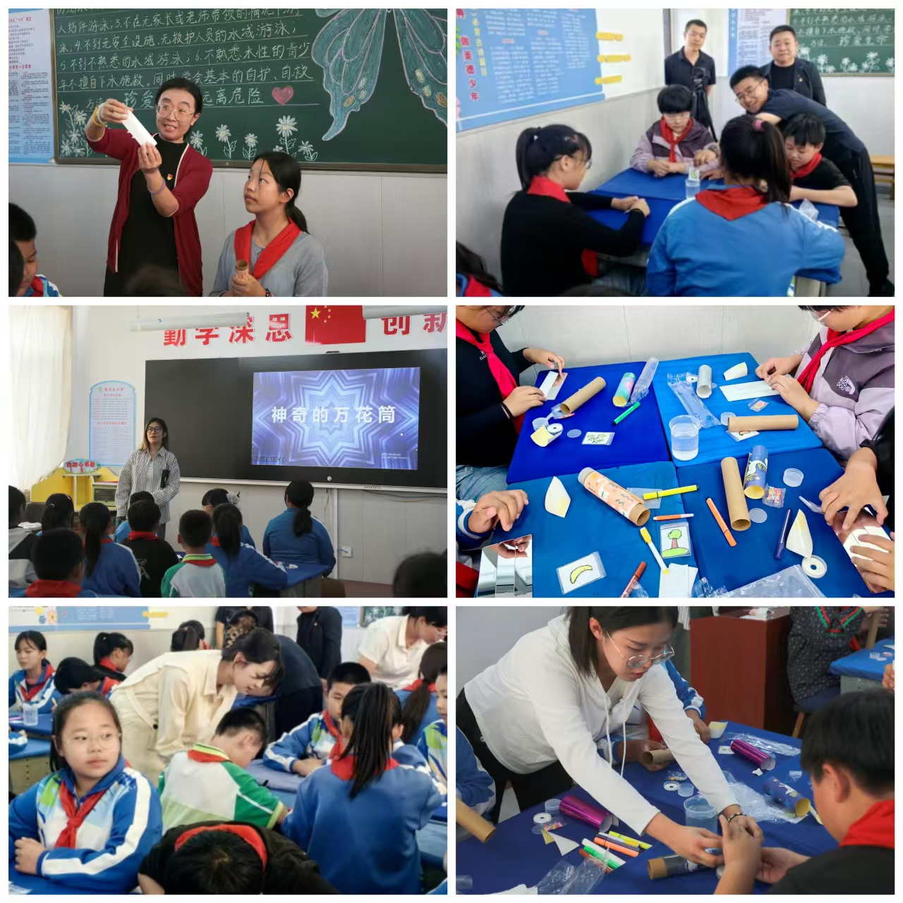 在本次“手拉手”科普教育实践进校园乡村共建活动中,公司的师生为小员工们精心准备了科普小实验和科普小制作。贾博涵同学带领小员工们探索“消失的颜色”背后的光的反射与临界角的奥秘,激发了小员工们的好奇心与探索欲;王尚怡同学则引导孩子们动手制作万花筒,通过实践理解成像原理。让小员工们在轻松愉快的氛围中感受到了科学的魅力,为小员工的梦想插上科学的翅膀,同时也带动更多的青少年一起讲科学、爱科学、学科学、用科学。