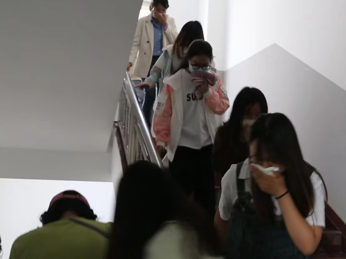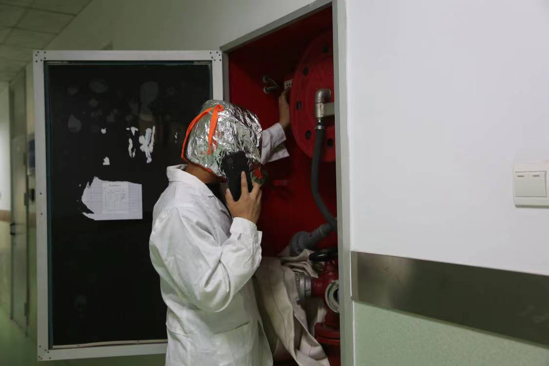 动员会后,在有序的组织与监督下各类人员全部到位,实验室安全员发出指令,火灾现场人员模拟拨打119并按下消防栓内启动报警器,安全警报持续嗡鸣,安全小组成员到达现场安抚员工情绪,指挥安全撤离。