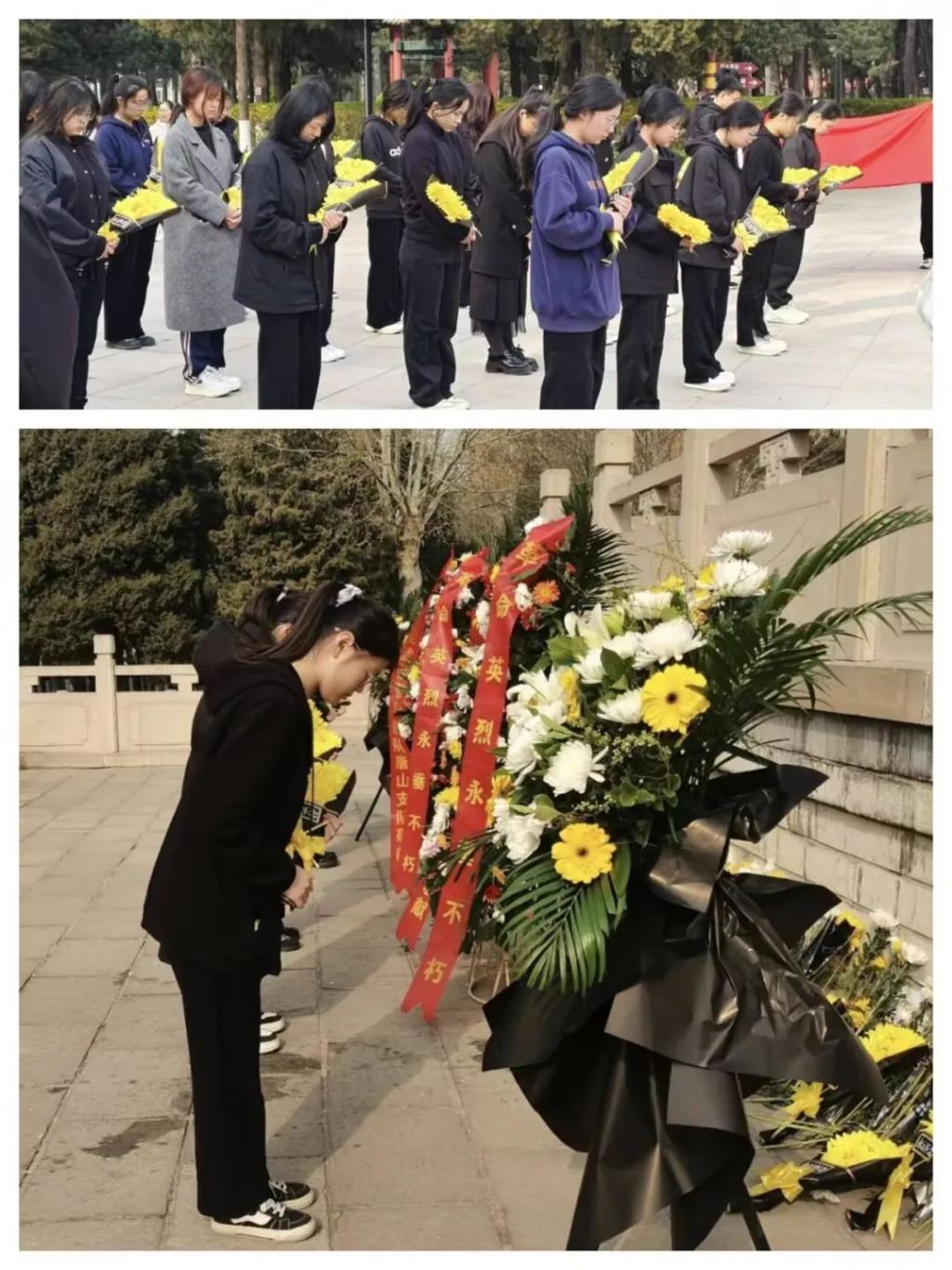 学子们身着统一的黑色服装,列队步入庄严肃穆的烈士陵园。巍峨的革命烈士纪念碑矗立于青松翠柏间,碑身上的金色大字熠熠生辉。学子们肃立默哀,深切追思革命先烈,随后献上鲜花并深深鞠躬,以表崇高敬意。