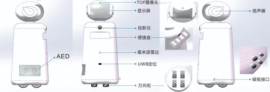 其中,由王重瑞、李靖怡、张康洁团队设计的“智能‘捕忆网’——阿尔兹海默症医学监测兼陪伴机器人”项目荣获省赛二等奖,并成功晋级全国总决赛。该项目通过非接触式传感和AI交互技术,实现居家安全监护、健康数据记录、情感互动及家庭事务管理,适配多代同堂家庭、独居人群及慢性病用户需求,助力提升生活品质与家庭照护效率。机器人结构如图所示。