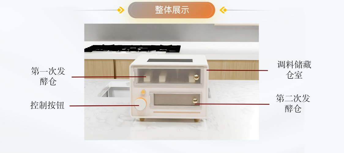 由刘雨棠、刘昕柔团队设计的“酶界管家Pro-智能家用酶活管理与发酵机器人”项目荣获省赛三等奖,该项目通过多风味自动化生产、智能环境调控及变质预警技术,实现标准化安全化制作,适用于家庭厨房、餐饮作坊及文化体验场景,推动传统美食智能化传承。机器人结构如图所示。