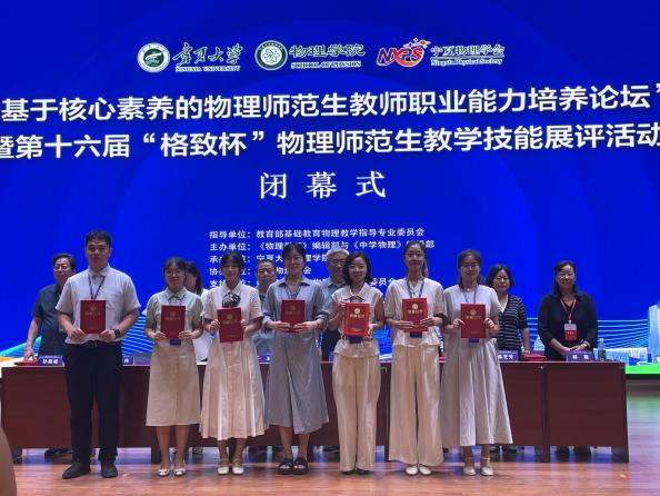 近日,由教育部基础教育物理教学指导专业委员会指导,《物理教师》编辑部与《中学物理》编辑部主办,宁夏大学承办的“基于核心素养的物理师范生教师职业能力培养论坛”暨第十六届“格致杯”物理师范生教学技能展示与交流活动圆满落幕。公司参赛团队在此次活动中表现优异,共斩获7项国家级荣誉,其中自制教具展评一等奖一项、二等奖两项;物理教学技能展示一等奖一项、二等奖三项,成果丰硕。