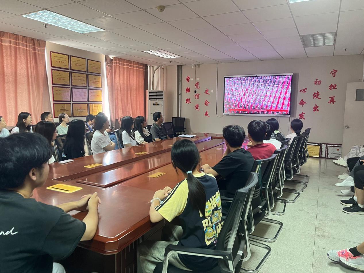 活动在庄严肃穆的氛围中拉开帷幕。全体党员怀着崇敬的心情,集体观看了纪念大会现场直播。当雄壮的《义勇军进行曲》响彻会场时,全体党员起立,高唱国歌。直播中,气势恢宏的阅兵式尤为震撼。受阅部队铿锵的步伐、昂扬的斗志,以及一件件彰显国家实力的现代化武器装备,无不展现着新时代中国的大国风采与钢铁长城般的国防力量。这不仅是国家实力的展示,更是对无数英魂的告慰和对和平的庄严承诺。