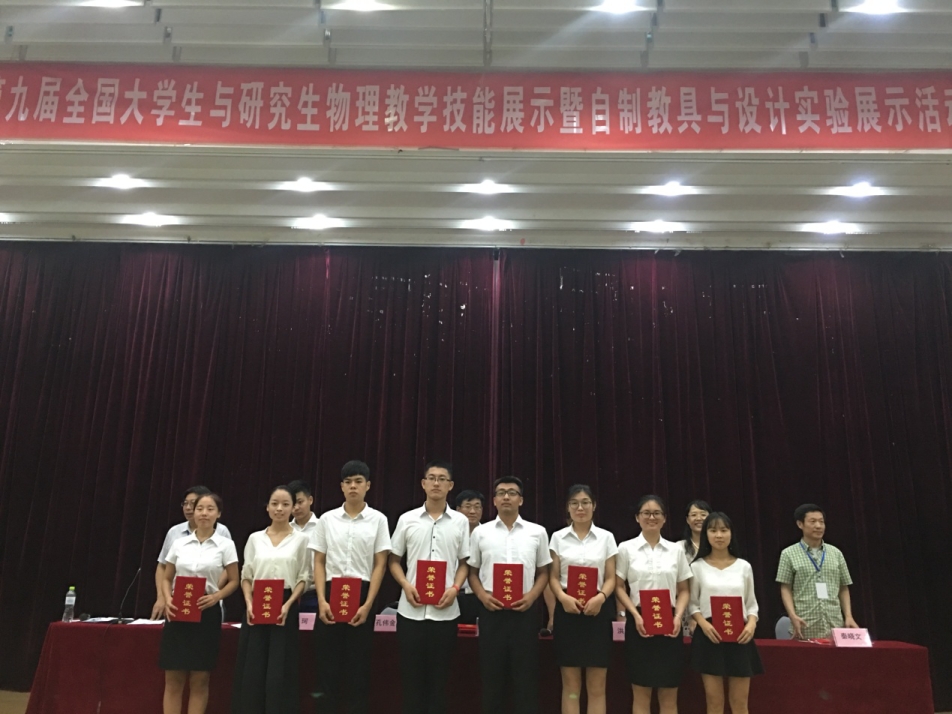 本次比赛佳绩的获得,离不开指导教师和同学们的共同努力。师生放弃暑假休息时间,认真备课,创新创意,完善教学设计,制作实验教具,提高师范生课堂教学技能和实验教具制作能力。同时也是物理系高度重视师范生理论培养和教学技能训练的体现,充分展示了物理系师范专业人才的培养水平。